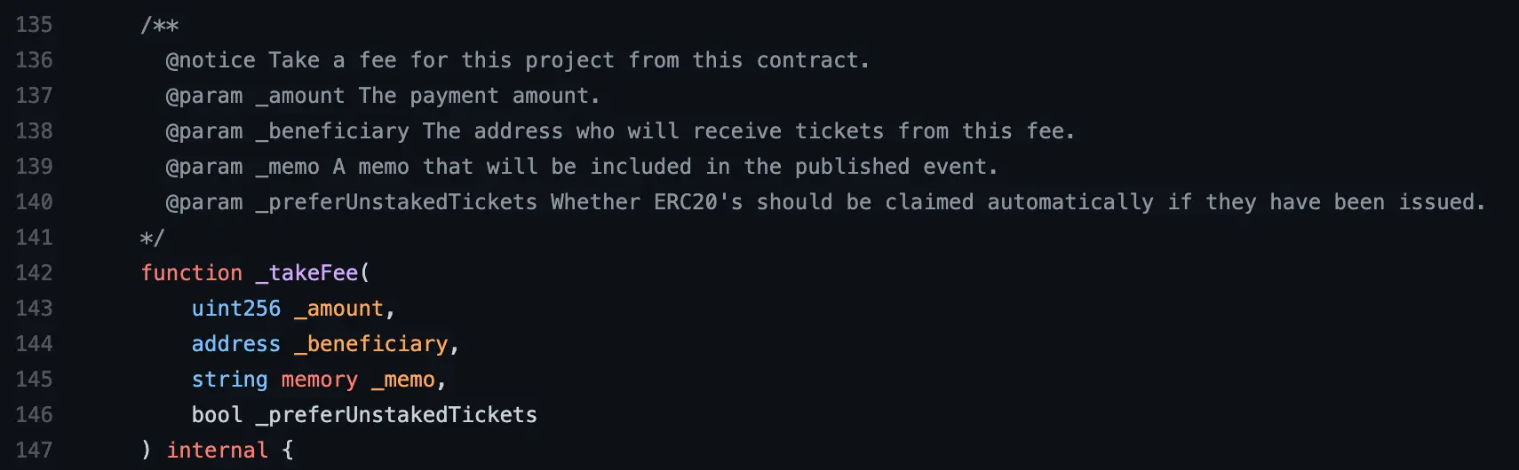 Once deployed, anyone can fund your project either as a patron by making a payment directly through juicebox.money, or by using other contracts that take fees composably into the Juicebox protocol. Either way, they'll receive your project's community tokens in return. People can pay you directly via an interface like juicebox.money.Or, inherit from JuiceboxProject.sol and use _takeFee to get paid contractually. As the project owner, you can set a funding target that specifies how much it'll cost to create and operate your project for a set amount of time. You do this before anyone sends you money. If your project earns more than its funding target in a set period of time, the overflow can be redeemed by your supporters alongside you in exchange for burning tokens. This effectively pushes everyone's price to pay for your project towards zero as usage grows.