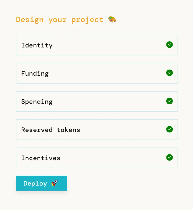 With just one gas-efficient transaction, you can start funding and growing a Juicebox project, and configuring its treasury's payouts.