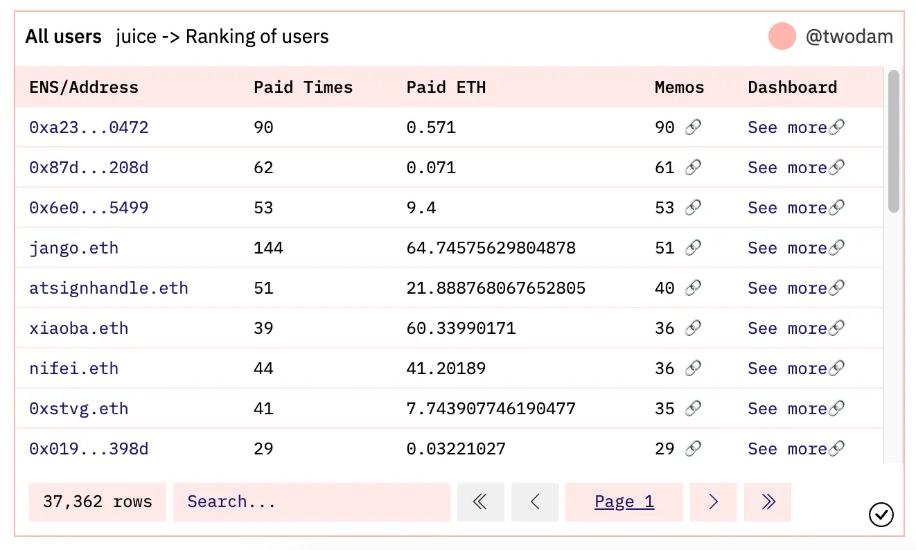 And back to the protocol overview payge, there is this All users If you click the See more after an ENS/Address, it will take you to the dedicated page of that person/address. Let's take @jango's as an example: