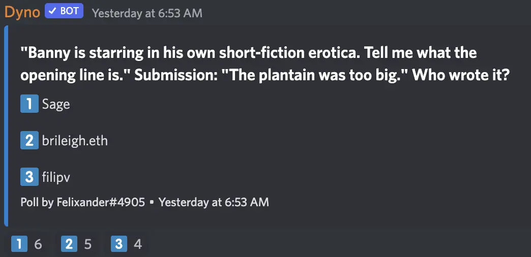 What happens in between the game is open-ended, we can bring whatever rules we want. We can say it's a winner-takes-all situation where the whole treasury will belong to the NFTs of the winner of the last game; or we can do something more interactive, let's say there's a preset amount of the treasury allocated to one specific stage game and the winner of the prediction ends up with those funds or at least has their NFTs backed by those funds.