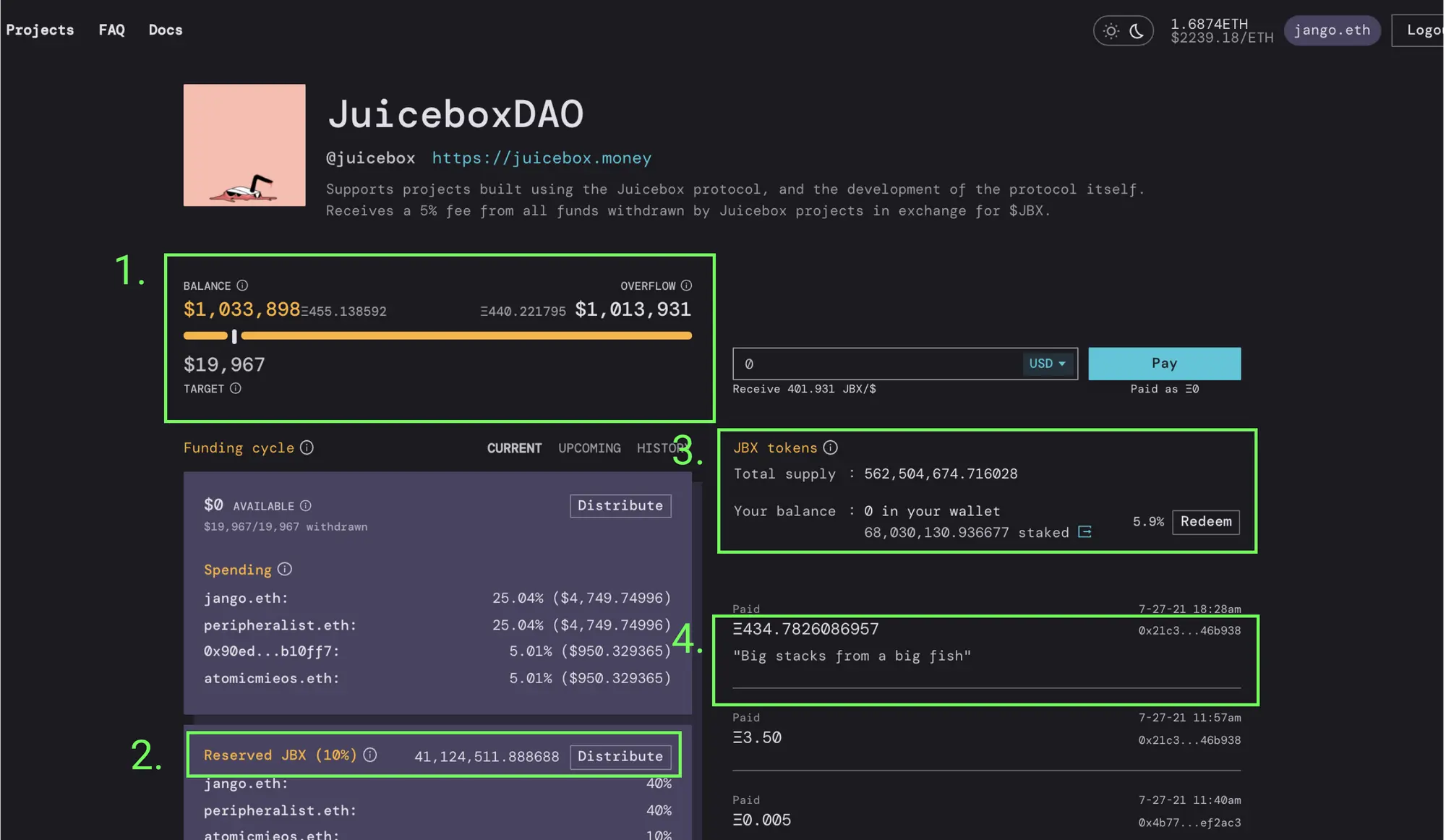 让我们来推演一个案例,看看如果有人一下子把大量资金注入 JuiceboxDAO, 会发生什么情况。
