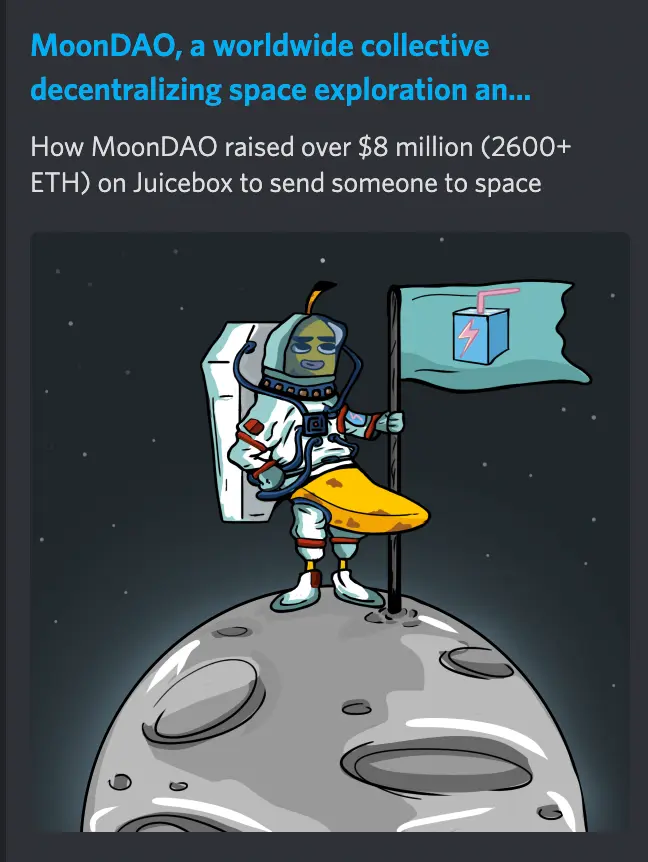 同时他们还撰写了一篇文章,详细介绍 MoonDAO 创建背景、发展历程和社区的最新情况。