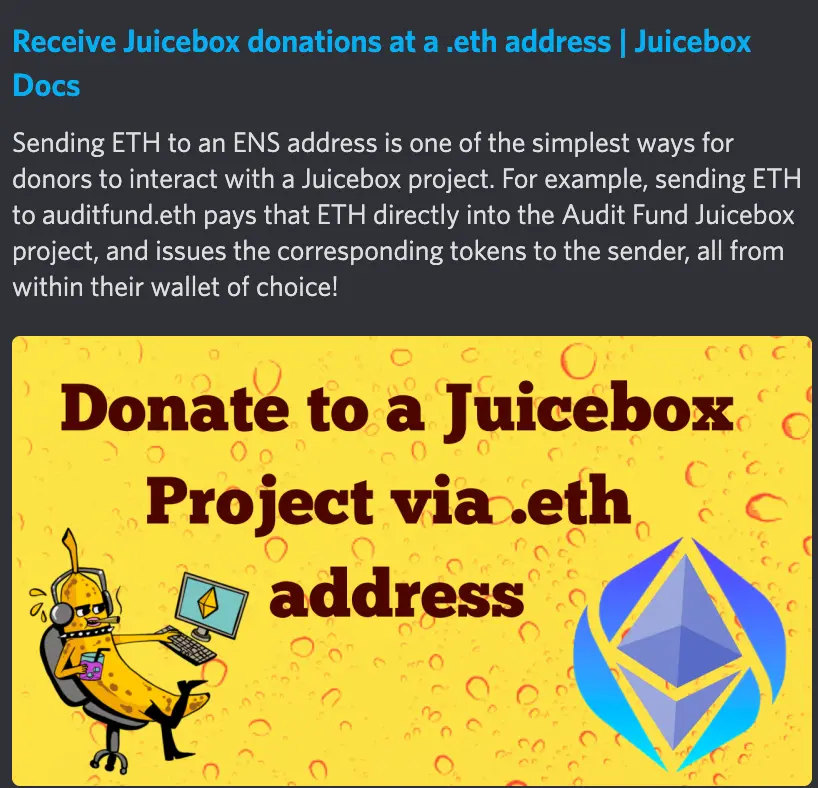Nicholas 在创建审计基金项目的过程中,摸索出一个用 ENS 域名来作为项目直接支付地址的模式,他把这个做法详细地写成一个教程,供大家需要时进行参考。